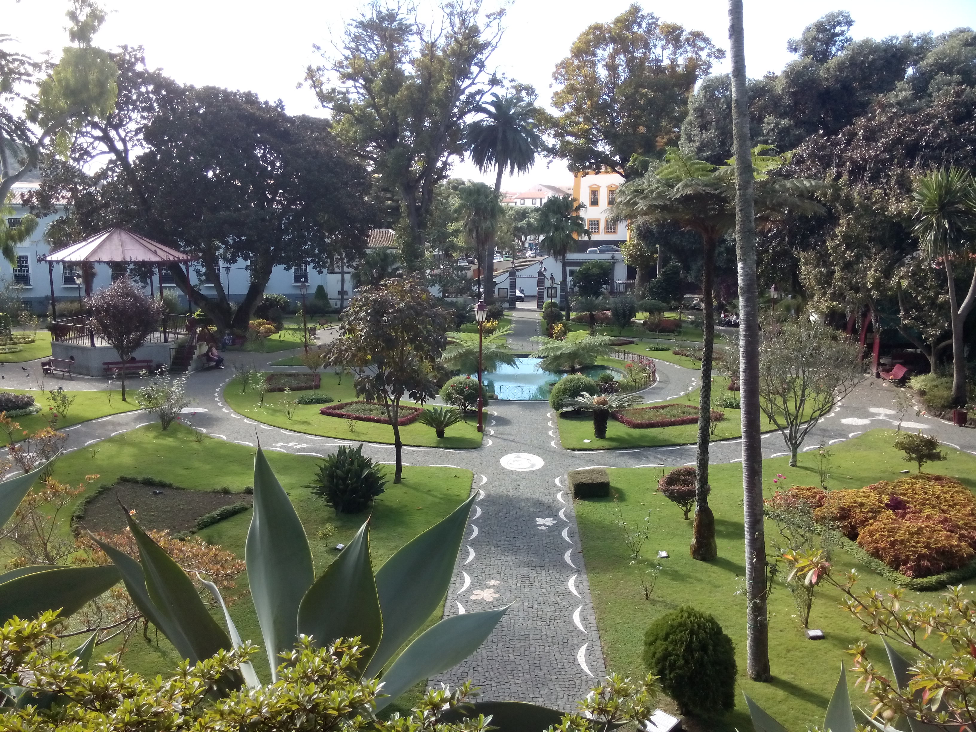 Eigentlich hatten wir vor, einen Zwischenstopp an der Caldeira Velha zu machen, einer heißen Quelle, in der man auch baden kann. Da aber auch dort die Parkplätze voll waren und außerdem gerade ein Bus ausgeladen wurde, sind wir nach Ribeira Grande Kaffee trinken gefahren.