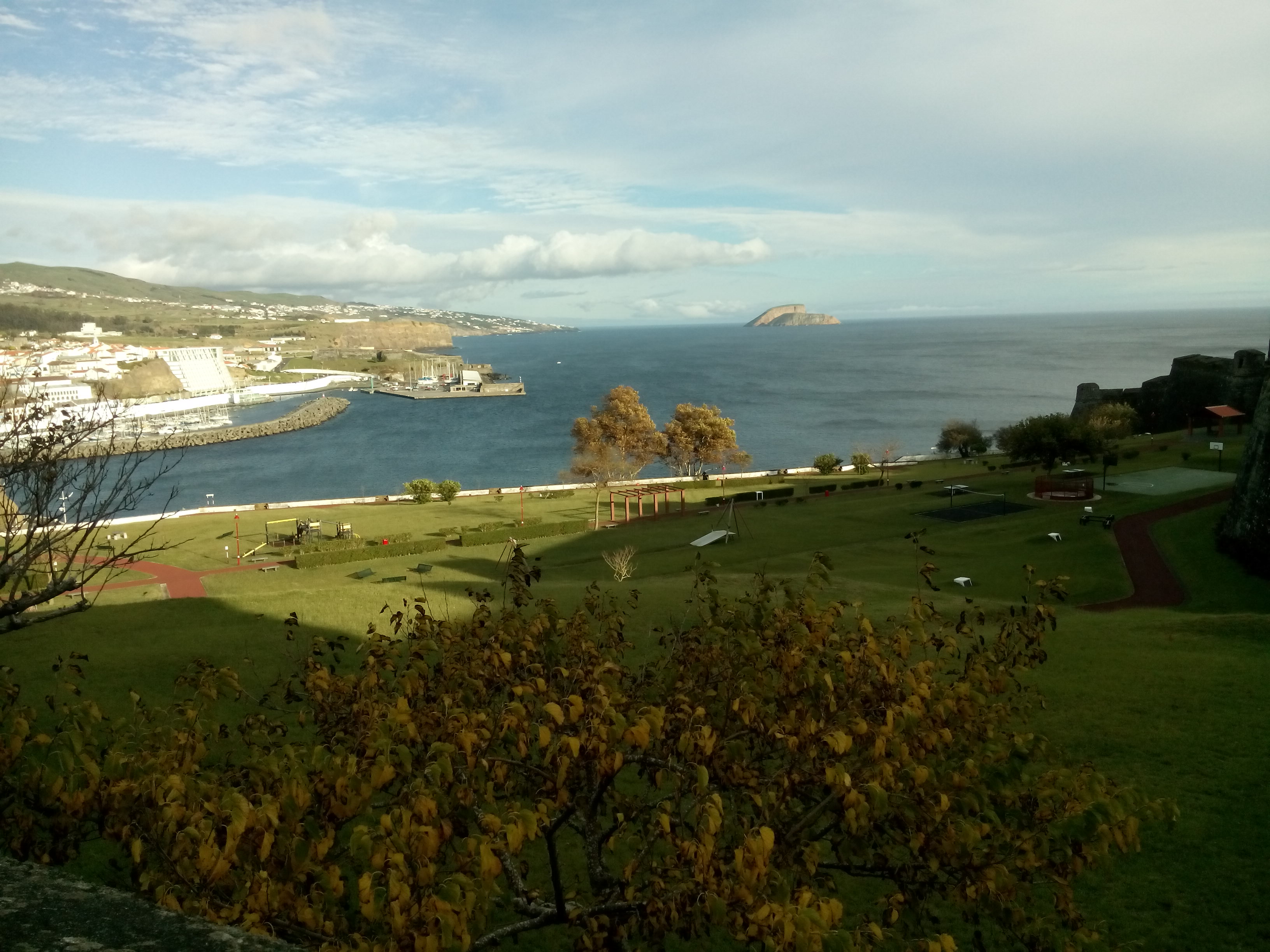 Wir haben dann unser Zimmerchen bezogen und uns dann auf den Weg auf den Monte Brasil gemacht, einem Berg auf einer kleinen Halbinsel vor Angra do Heroismo. Von hier hat man einen schönen Blick über die Stadt und aufs Meer.
