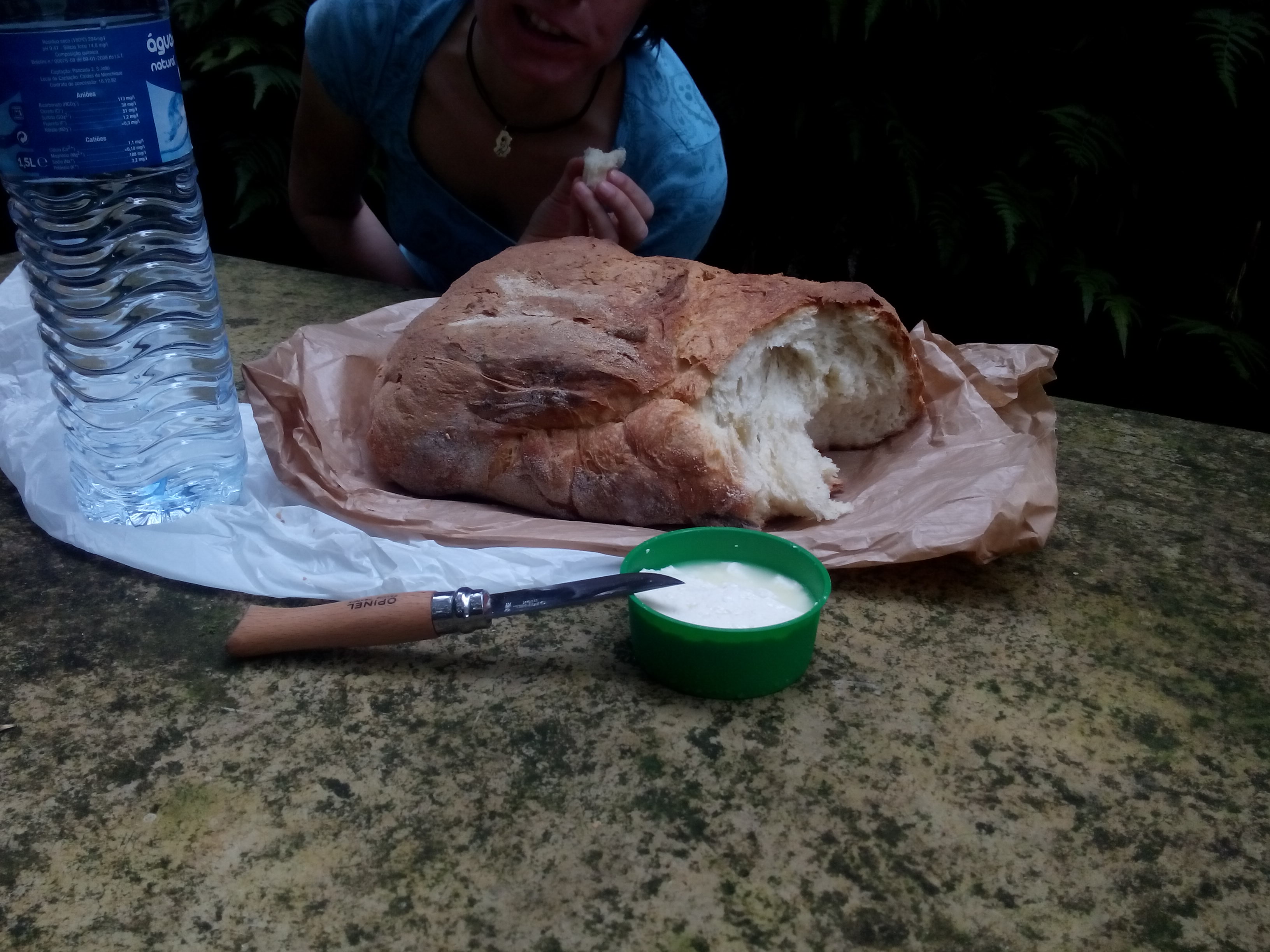 Zuerst ging es ein Stück die Südküste entlang, mit kurzem Stopp hier und da. In einem Minimercado (kleiner Tante-Emma-Laden) wollte ich Wasser, Brot und Käse für ein kleines Picknick einkaufen. Für Brot schickte mich der Inhaber drei Häuser weiter, ich solle dort klingeln und würde Brot bekommen. Gesagt getan, ich klingelte erst falsch…ein kleiner Junge, der gerade vorbei lief, schickte mich eine Tür weiter. Und schwuppdiwupp stand ich in einer Backstube, wo drei Frauen werkelten, Brot in großen Schüsseln vor sich hin ruhte und ein Holzfeuerofen in Betrieb war. Ich bekam ein riesiges Brot (angeblich das kleinste das sie hatten…da kann ich nur sagen: die backen keine kleinen Brötchen). Zusammen mit dem frischen Weichkäse aus dem Nachbardorf, ließen wir es uns auf einem schönen Picknickplatz in einer grünen Schlucht schmecken.