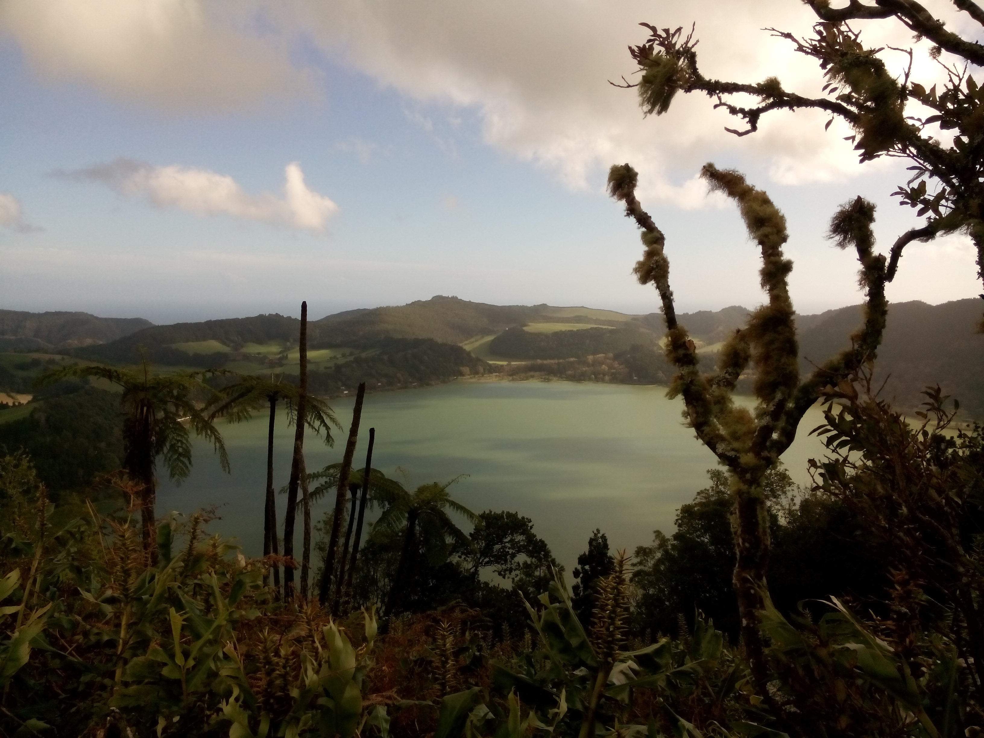 Nach einem steilen Abstieg von der Straße zum Seeufer begannen wir, wie zahlreiche weitere Touristen, am Ufer entlang zu wandern. Wir gingen dann so weit, bis es nicht mehr weiter ging. Hier hinten gab es dann schon wesentlich weniger Besucher. Im Sommer, wenn der Wasserstand niedriger ist, kann man den See angeblich komplett umrunden. Nach einer ausgiebigen Pause, die wir auch dazu nutzten, unsere Füße mal ins Wasser zu halten, gingen wir zurück Richtung Parkplatz und mussten das Seeufer nun nur noch mit einigen wenigen Wanderern teilen. Wir haben bei der Gelegenheit dann noch drei Geocaches gesucht (und gefunden), die der Reihe nach am Seeufer versteckt waren. Nach einem recht anstrengenden Aufstieg fuhren wir nun in Richtung Ribeira Grande.