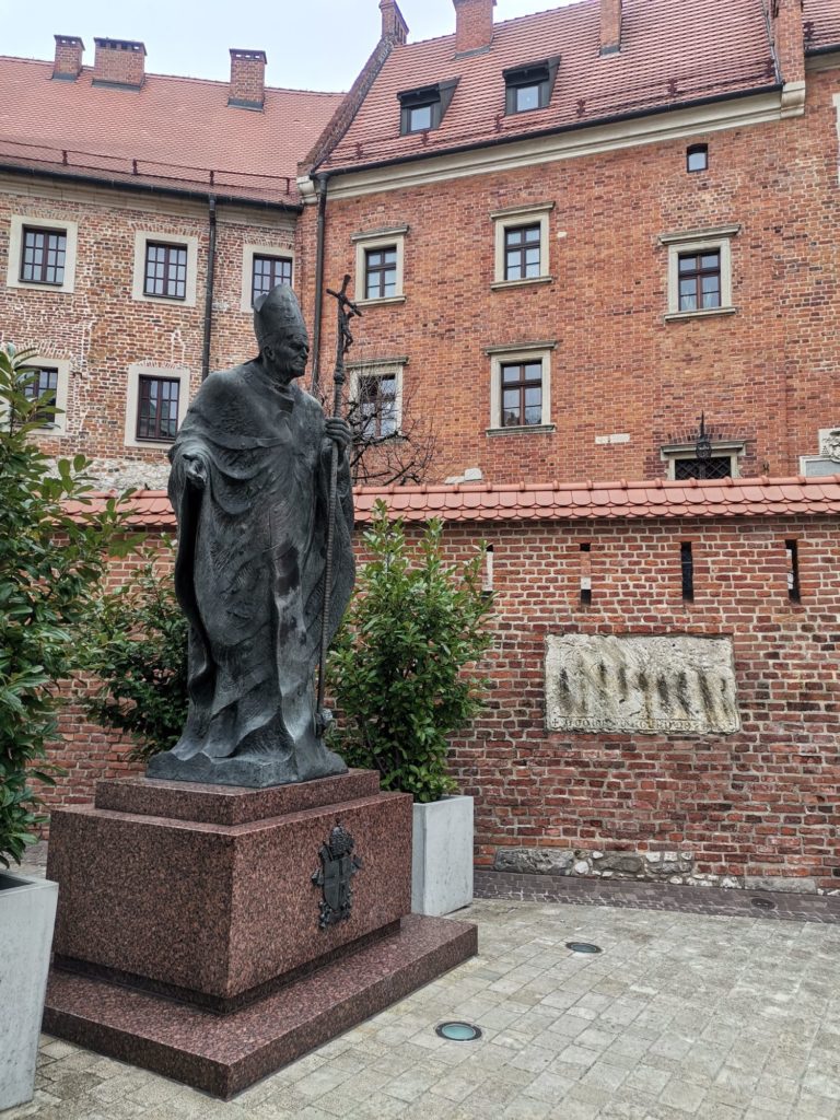 Bronzefigur des Papstes im Wawel-Hof.