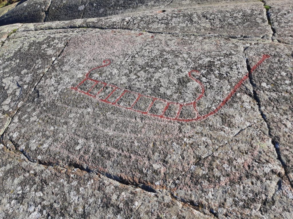 Als nächstes haben wir uns die Petroglyphen von Madsebakke angeschaut, die zu den wichtigsten Nordeuropas zählen. Sie stammen aus der Eisenzeit und sind bis zu 3000 Jahre alt. Da sie mittlerweile schwer zu erkennen sind werden sie hin und wieder mit Farbe nachgezeichnet.
