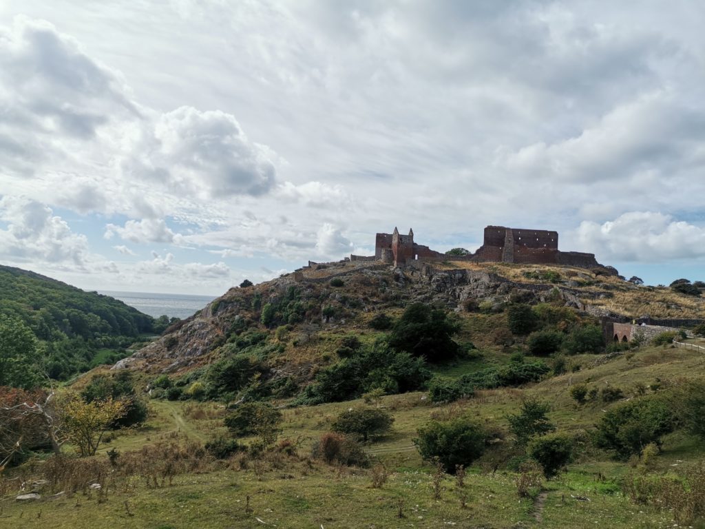 Heute wollten wir das Highlight der Insel – die Festung Hammershus, eine der größten Festungsanlagen Nordeuropas – besuchen und mit einer ca. 40 km langen Radtour verbinden. Dafür war es allerdings schon etwas zu spät, weshalb wir ins Fischerörtchen Vang fuhren, dort parkten und uns mit dem Fahrrad erstmal auf den Weg zur Burg aufmachten – immer schön bergauf.