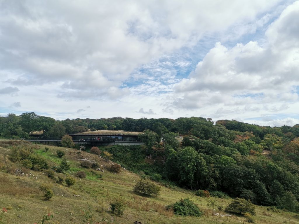 Das Besucherzentrum wurde schön in die Landschaft integriert und bietet, sowohl von der Besucherterrasse auf dem Dach, als auch vom Café aus, einen herrlichen Blick auf die Burganlage. Der Eintritt zur Burg ist frei.