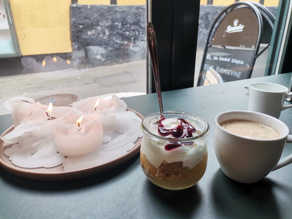 Nach so viel Laufen wurde es Zeit für einen Kaffeestopp. Welch ein Glück, dass nur ein paar Meter von der Kirche entfernt ein gemütliches Café (Lu-kier) mit sehr leckerem Kuchen auf uns wartete.