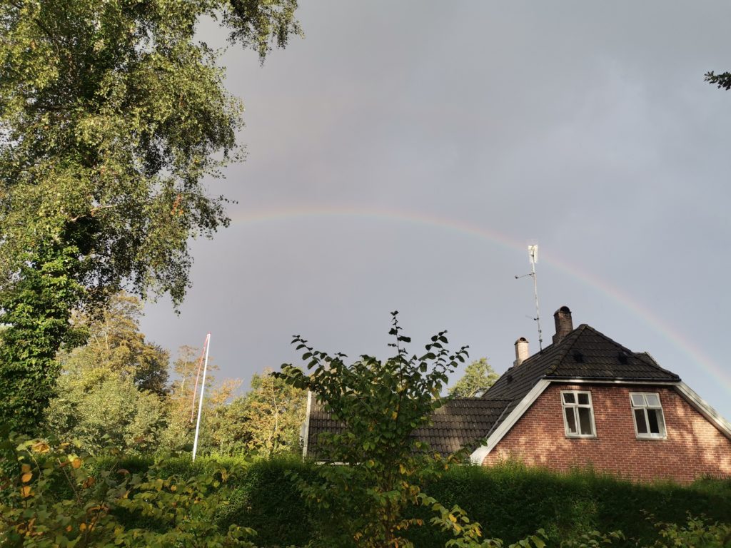 Wir dachten schon, Bornholm will uns den Abschied erleichtern, denn heute Morgen regnete es kräftig und es sah draußen sehr ungemütlich aus. Ersteinmal ging ich im Regen Brötchen holen. Dann zauberte das Wetter einen Regenbogen an den Himmel. Das musste ein gutes Zeichen sein!