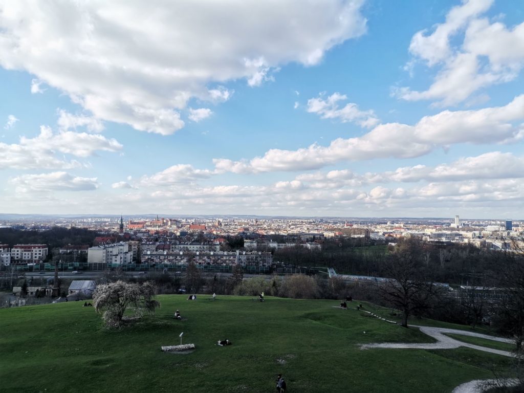 Wir spazierten weiter durch das jüdische Viertel Kazimierz, nach Podgorze, bestiegen die Regenbogentreppe und gelangten schlussendlich zum Krakus-Hügel, der sich etwa 3 km südlich der Altstadt befindet. Vom 16 Meter hohen Hügel hatten wir einen schönen Ausblick auf die Umgebung. Dort „oben“ pfiff der Wind ganz schön eisig und wir mussten uns einmummeln. Rund um den Hügel ist Wiese und im Sommer ist das bestimmt ein herrlicher Ort zum Erholen, für ein Picknick, Sport oder um den Sonnenauf-/untergang zu genießen.