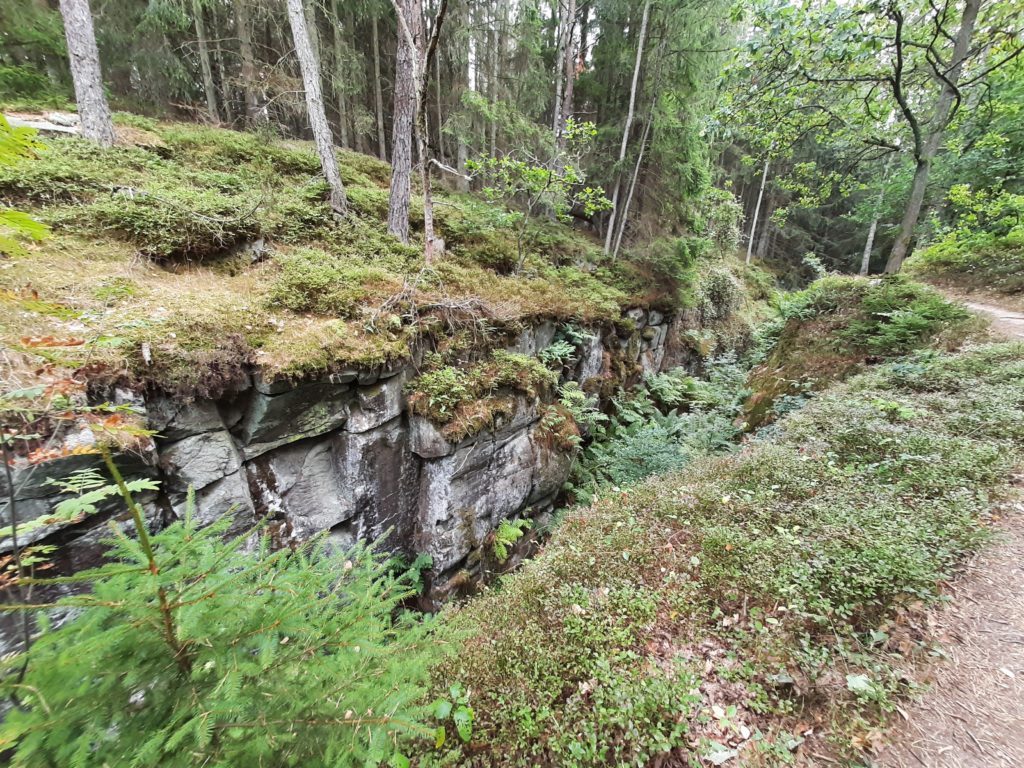 Ein Stück weiter ging der Weg an einem Spaltental entlang, einer Schlucht, die stellenweise nur wenige Meter breit ist. Kurz darauf wanderten wir am Gamledam weiter. Dabei handelt es sich um ein Hochmoor. Das Platschen der vor uns die Flucht ergreifenden Frösche begleitete uns.