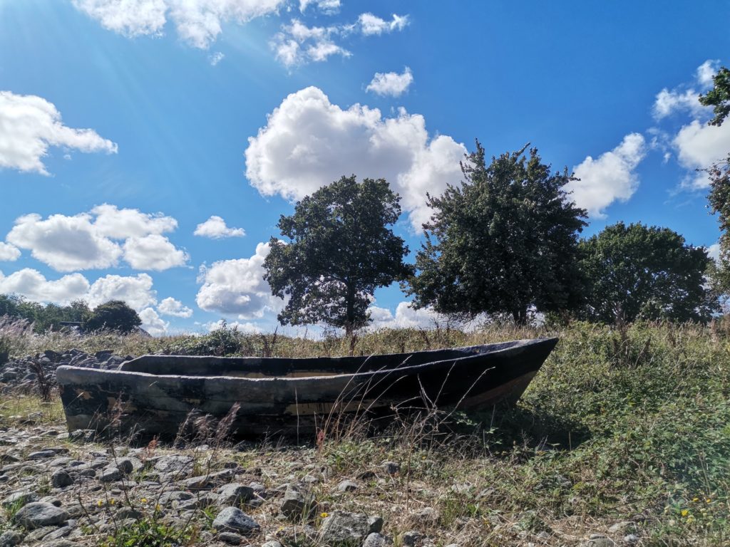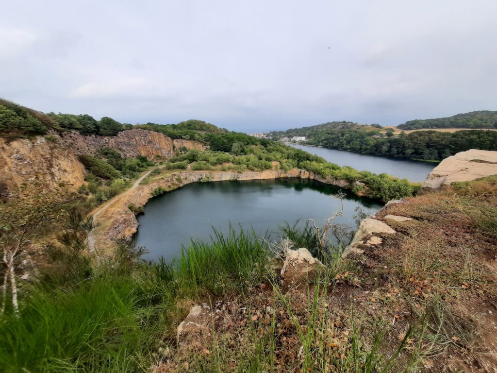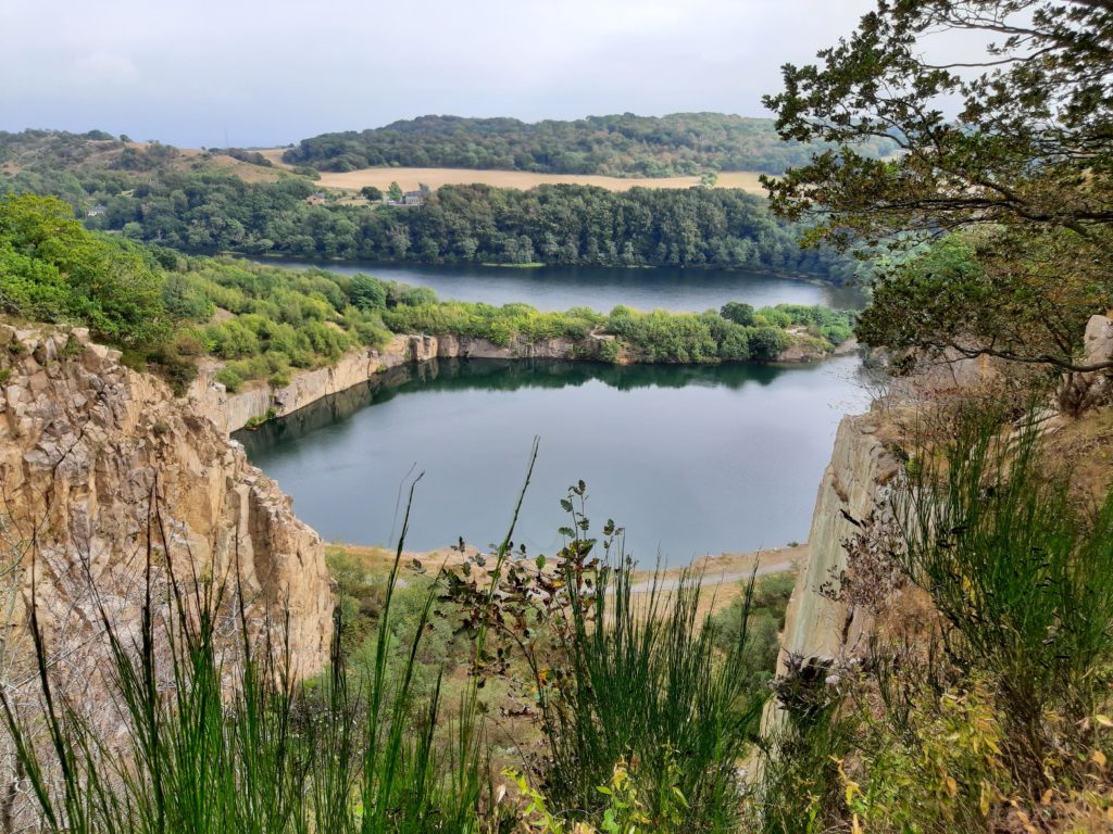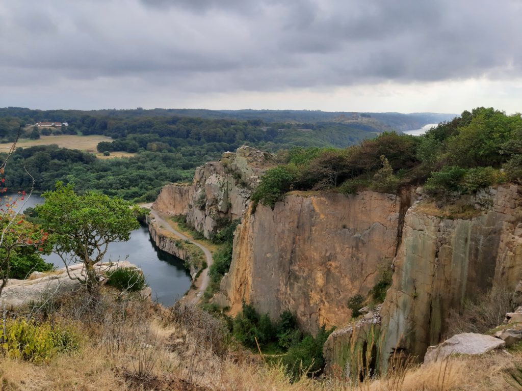 Den Rückweg nach Sandvig nahmen wir über die Rückseite des Berges. Von hier aus hat man tolle Aussichten auf das Meer und die Festung Hammershus sowie auf die riesigen ehemaligen Granitsteinbrüche, die inzwischen mit Wasser vollgelaufen sind und unter anderem zum Baden und Angeln genutzt werden. Eine Zeit lang waren die Steinbrüche im Besitz eines deutschen Unternehmers, weshalb ein Großteil des gebrochenen Granits als Pflastersteine in Deutschland endeten, unter anderem in Berlin.