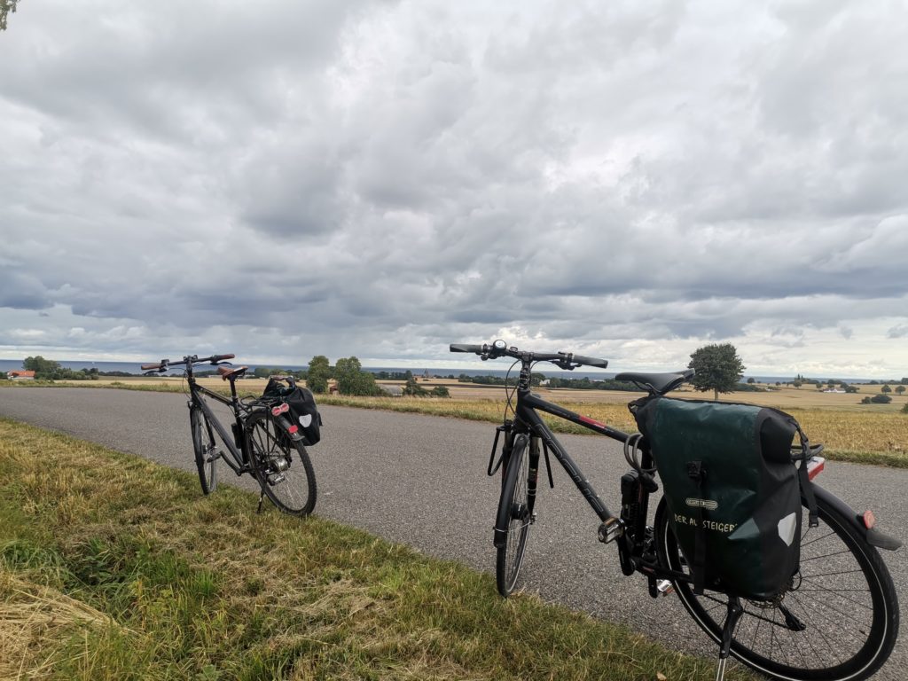 Das war eine wirklich schöne Tour. Die Landschaft war abwechslungsreich, es gab immer mal wieder etwas zu gucken, unterwegs konnten wir Brombeeren naschen und obwohl es immer wieder auf und ab ging radelte es sich herrlich. Geregnet hat es immer bevor wir irgendwo ankamen und am Ende der Tour war herrlichster Sonnenschein. Ein perfekter Tag!