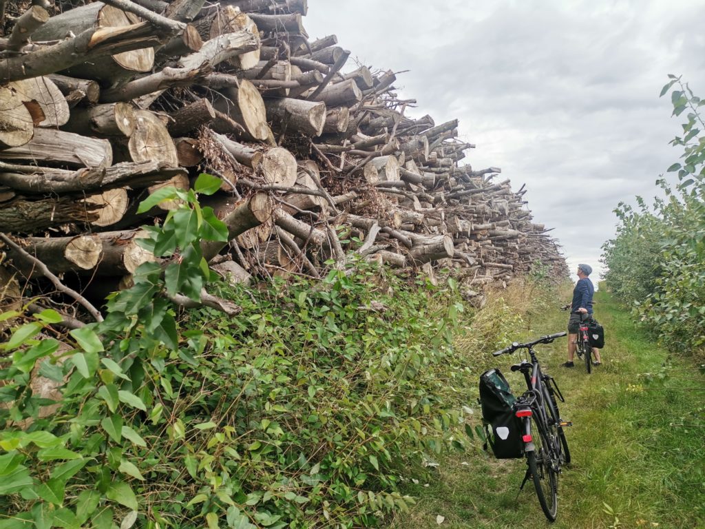 Weiter geht es über Felder, vorbei an verfallenen landwirtschaftlichen Gebäuden, durch dunkle Fichten- und schöne Mischwälder. Teilweise haben wir ganz schön mit dem Wind zu kämpfen.