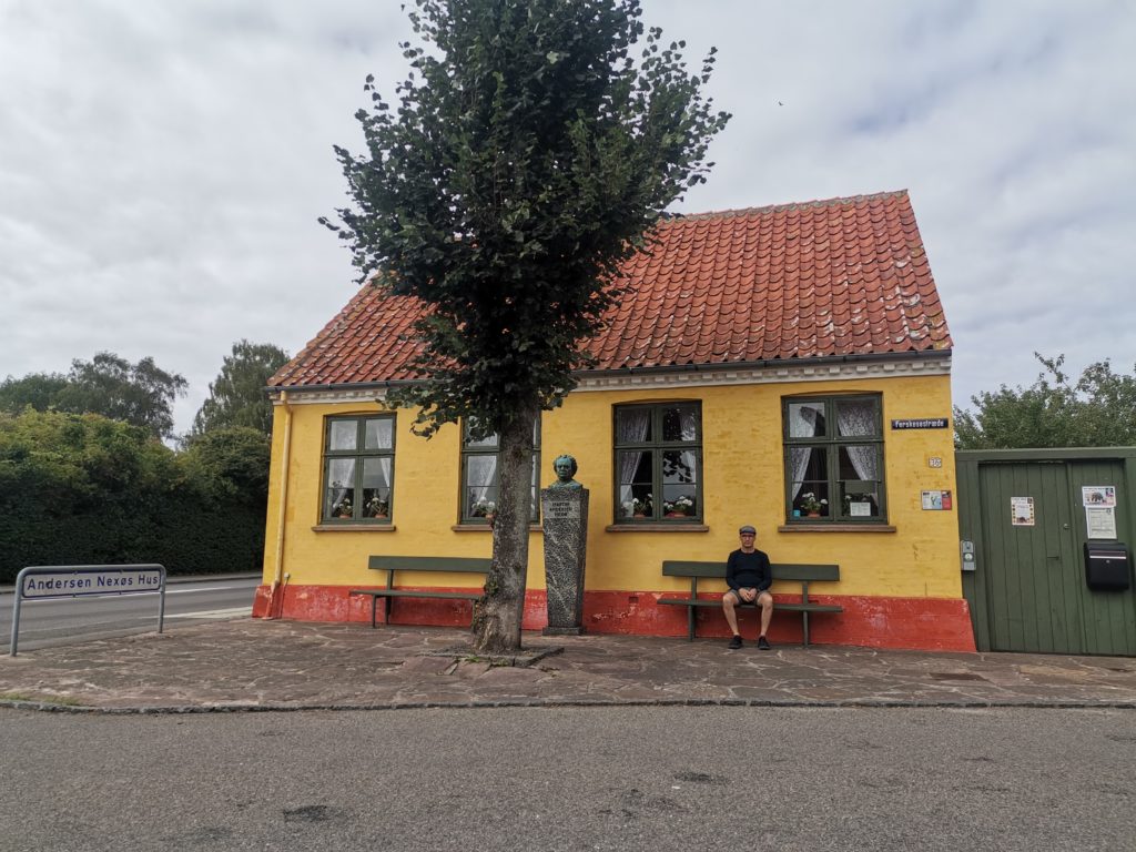 Zum Ende des zweiten Weltkrieges wurde Nexø stark von sowjetischen Bomben zerstört und daran liegt es wohl auch, dass das Zentrum nicht so hübsch daher kommt. Besonders in einem Bereich des Hafens aber haben sie sich mit einem kleineren Einkaufszentrum architektonisch wirklich keinen Gefallen getan. Wir radeln auch gleich weiter und kommen zufällig an dem Haus vorbei, wo der dänische Schriftsteller Martin Anderson Nexø seine Kindheit und Jugend verbracht hat. Heute ist es ein Museum. Abends lesen wir gleich noch eine Geschichte aus seinem Buch „Bornholmer Novellen“, das wir extra mitgenommen hatten.