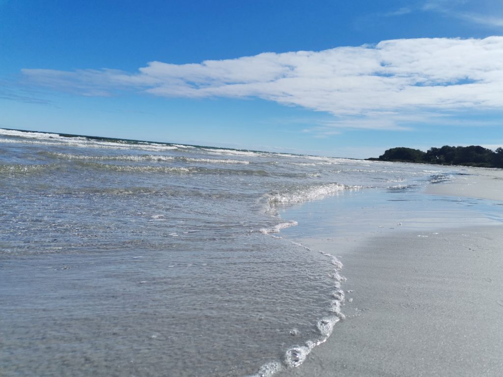 Ich mit nackten Füßen am Strand spazierend, viel mehr wollte ich diesen Urlaub eigentlich gar nicht. Das hat mir wirklich gefehlt, weil wir diesen Sommer kein einziges Mal an der Ostsee waren! Bernhard nutzt die Zeit zum Schlafen. Baden gehen wir beide nicht.