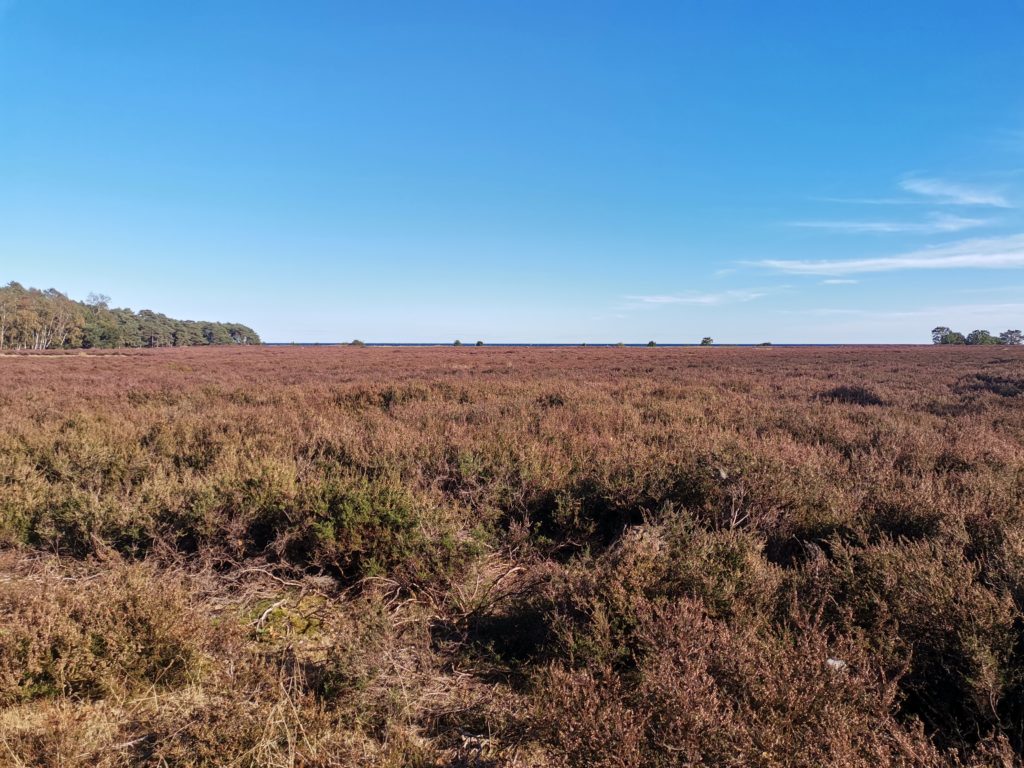 Großes Heidekrautfeld im Vogelschutzgebiet an der Küste südlich von Nexø.Sammelplatz für Vögel.