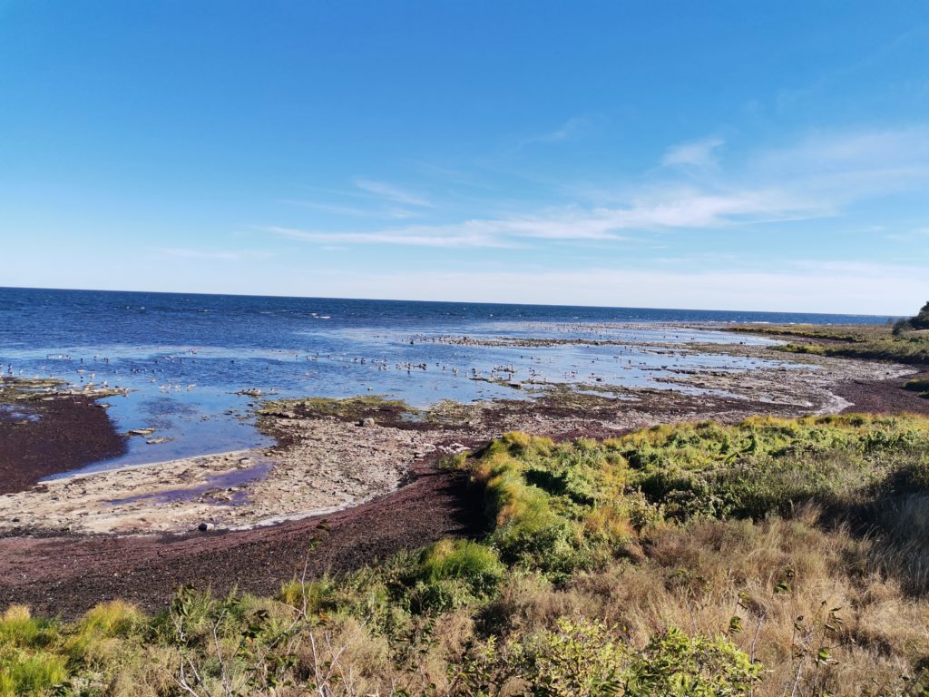 Für die Rückfahrt nehmen wir die Küstenstraße. Das ist zwar eine Hauptstraße, aber mit Radweg und wieder wenig Verkehr. Es geht bergauf und bergab und die Ausblicke sind herrlich!