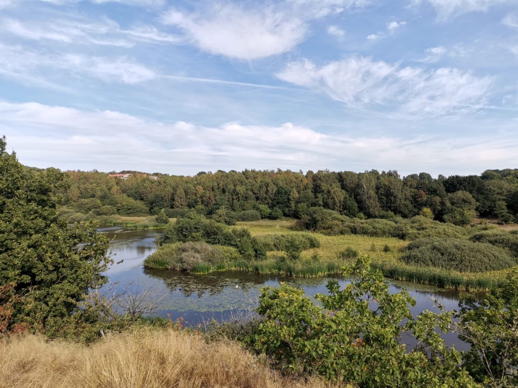 Das letzte Stück Radweg führt auf einer ehemalige Bahntrasse entlang und am Naturschutzgebiet Spellinge Mose vorbei. Hier machen wir noch einmal Rast und genießen den schönen Blick auf den See und die Umgebung.