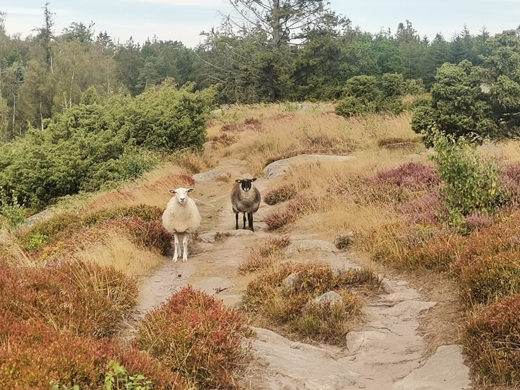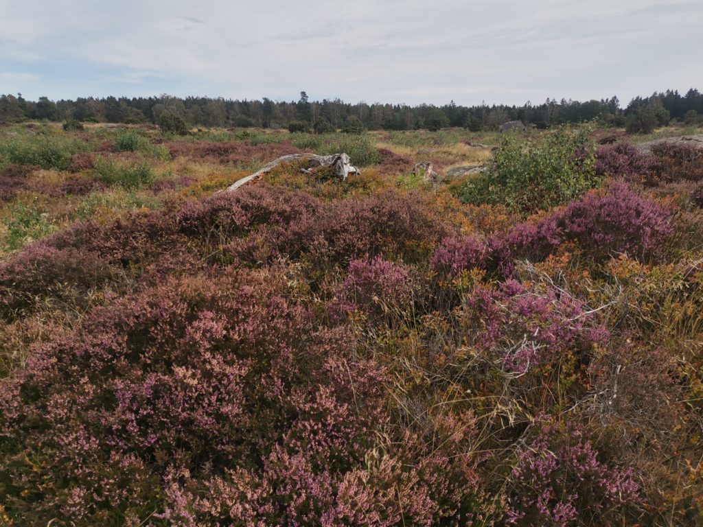 Die nächste Attraktion war eine riesige umzäunte Hochebene, die durch Kahlschlag renaturiert wurde und durch die dort lebenden Schafe in diesem, für die Insel wohl ursprünglichen Zustand, erhalten werden soll. Aufgrund der riesigen blühenden Heideflächen erinnert dieses Plateau irgendwie an Schottland.