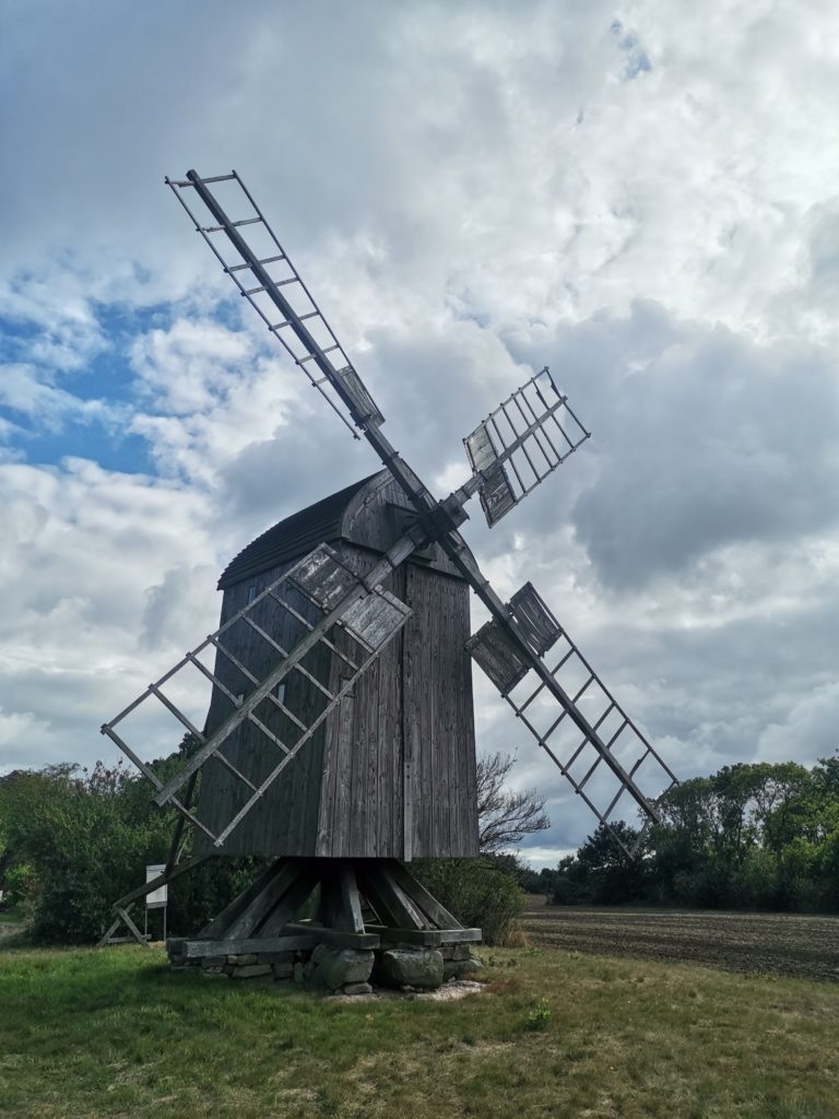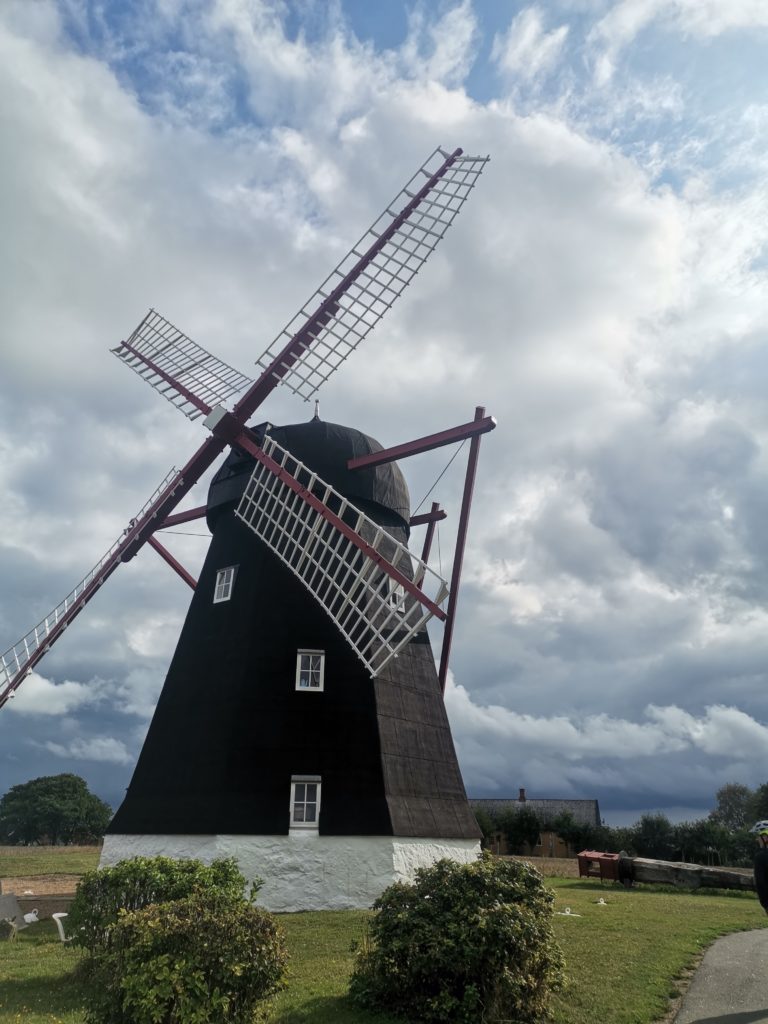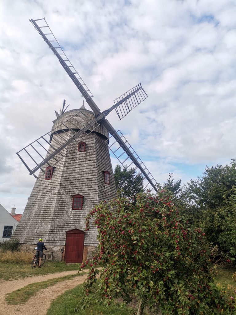 Unsere erste Rast (Obst und Nüsschen) machten wir an der Egeby Mølle, einer schnuckeligen Bockwindmühle von 1787. Bis 1920 war sie in Betrieb und seit 1935 gehört sie dem Bornholmer Verband, der sich, dem Zustand nach zu urteilen, bestens um sie kümmert.