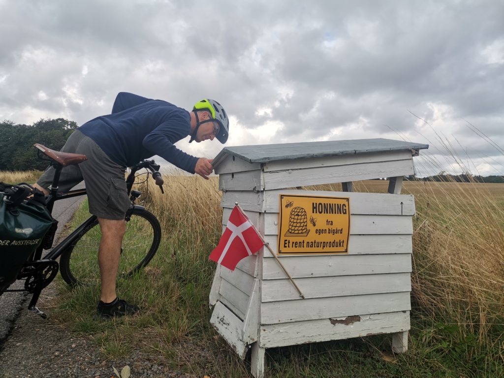 Unterwegs kamen wir immer wieder an den bereits öfter erwähnten Selbstbedienungsständen vorbei. Am ersten Honigstand haben wir nur geschaut. Am zweiten konnten wir den Honig sogar verkosten und haben dann zwei Gläser mitgenommen. Es empfiehlt sich, immer genügend Kleingeld dabei zu haben.