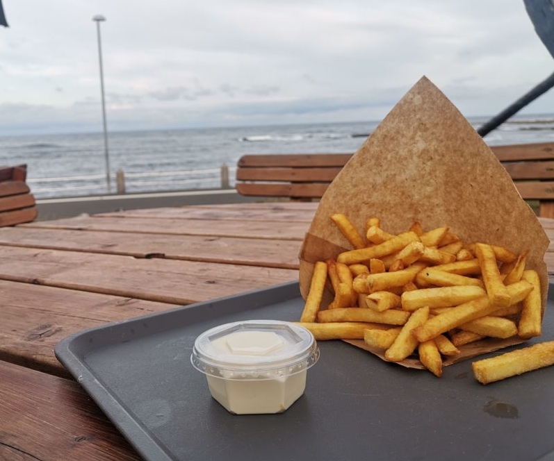 Bevor wir uns auf den Rückweg gemacht haben gab’s noch Pommes am lokalen Imbiss. Das hört sich jetzt irgendwie billig an, wird dem Ganzen aber nicht gerecht: es gab gemütliche Tische und Bänke mit Meerblick und ganz leckere, knusprige Pommes!