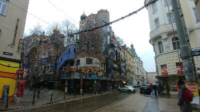 und Hundertwasser-Village gemacht, von wo aus wir dann gleich das um die Ecke liegende Kunst Haus Wien besucht haben. Allerdings nicht, ohne vorher noch Apfelstrudel und Sachertorte im angeschlossenen Café zu essen. Im KHW sind zahlreiche Werke von Friedensreich Regentag Dunkelbunt Hundertwasser ausgestellt, sehr beeindruckend das Ganze.
