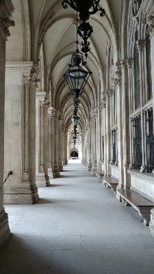 Dann sind wir mit der Straßenbahn die Ringstraße entlang gefahren. Am Rathaus sind wir ausgestiegen. Toller gotischer Bau. Hat mich irgendwie an Harry Potter erinnert.